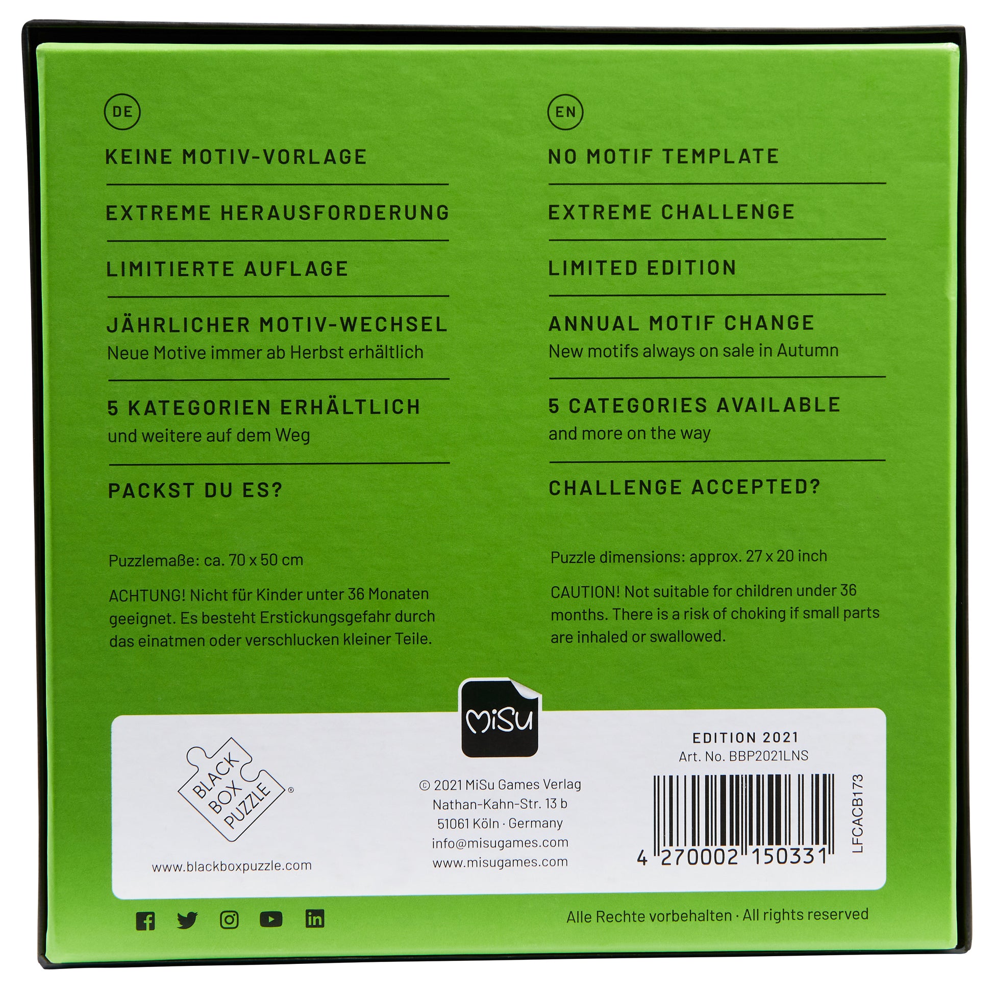 - Mehr als nur ein Puzzle: Die Black Box Puzzle Reihe von MiSu Games fördert die Konzentration bei Kindern, passt perfekt zum Gehirntraining für Erwachsene und sorgt für alle Puzzler dieser Welt für ein spannendes Puzzlevergnügen.
